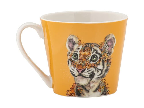 Bring the wild inside with this Tiger mug from the Wild Planet collection. Created in collaboration with artist Marini Ferlazzo, it features a beautiful illustration of young wildlife, embellished with lush flowers and foliage. Made from quality porcelain with a contemporary conical shape, it will make a colourful and stylish addition to your kitchen. This gorgeous mug is full of colour and charm and makes a wonderful gift idea.
