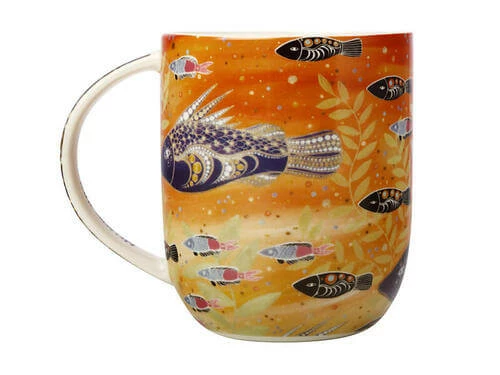 This mug from the Jagaig-Bana-Wabu (Earth-Water-Rainforest) collection features an original design by Australian artist Melanie Hava. Hava’s Aboriginal and Austrian heritage influence her artwork, with inspiration taken from both the reef and rainforest country of Far North Queensland and Austrian architecture and artists like Gustav Klimt. Each design in the range showcases a stunning combination of flora, fauna and landscapes in a vibrant colour palette.