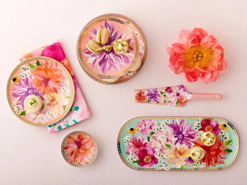 This pink Dahlia Daze plate brings luxury to the table. Part of the Teas & C’s collection, it features a sumptuous design inspired by fashion and nature. This beautiful plate is ideal for serving cakes, finger foods and sandwiches at your next morning tea. Made from quality porcelain, it has a classic elegance.