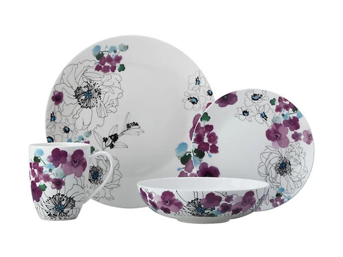 Bring the colours of the French countryside to your table with this 16-piece dinner set from the Viola range. Viola features illustrative blooms in purple with hints of blue and green, and a contemporary ink line drawing overlay.